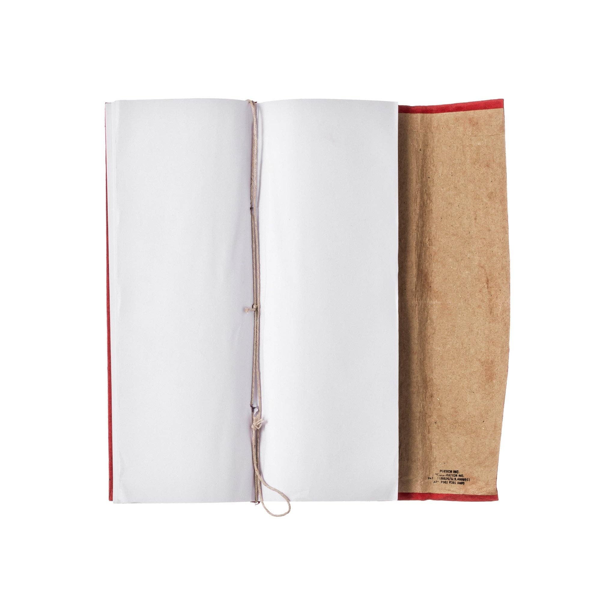 - Rustic cotton fabric cover with fold-over flap and string tie for a secure and nostalgic feel