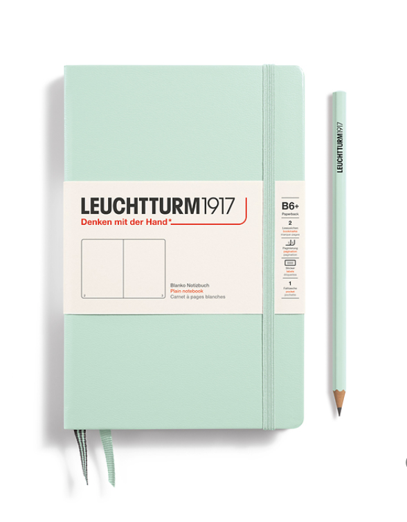 Lightweight and flexible, the Leuchtturm1917 B6+ Softcover Notebook offers all the thoughtful features of the hardcover edition in a slimmer, more portable design. Measuring 125 × 190 mm, it’s easy to slip into a bag while still providing ample space for journaling, planning, or note-taking. With 219 numbered pages of fountain-pen-friendly 80 gsm paper, 8 detachable sheets, 2 bookmarks, a gusseted pocket, and elastic closure, it balances functionality with everyday portability. Ideal for those who want Leuchtturm quality in a travel-friendly format.