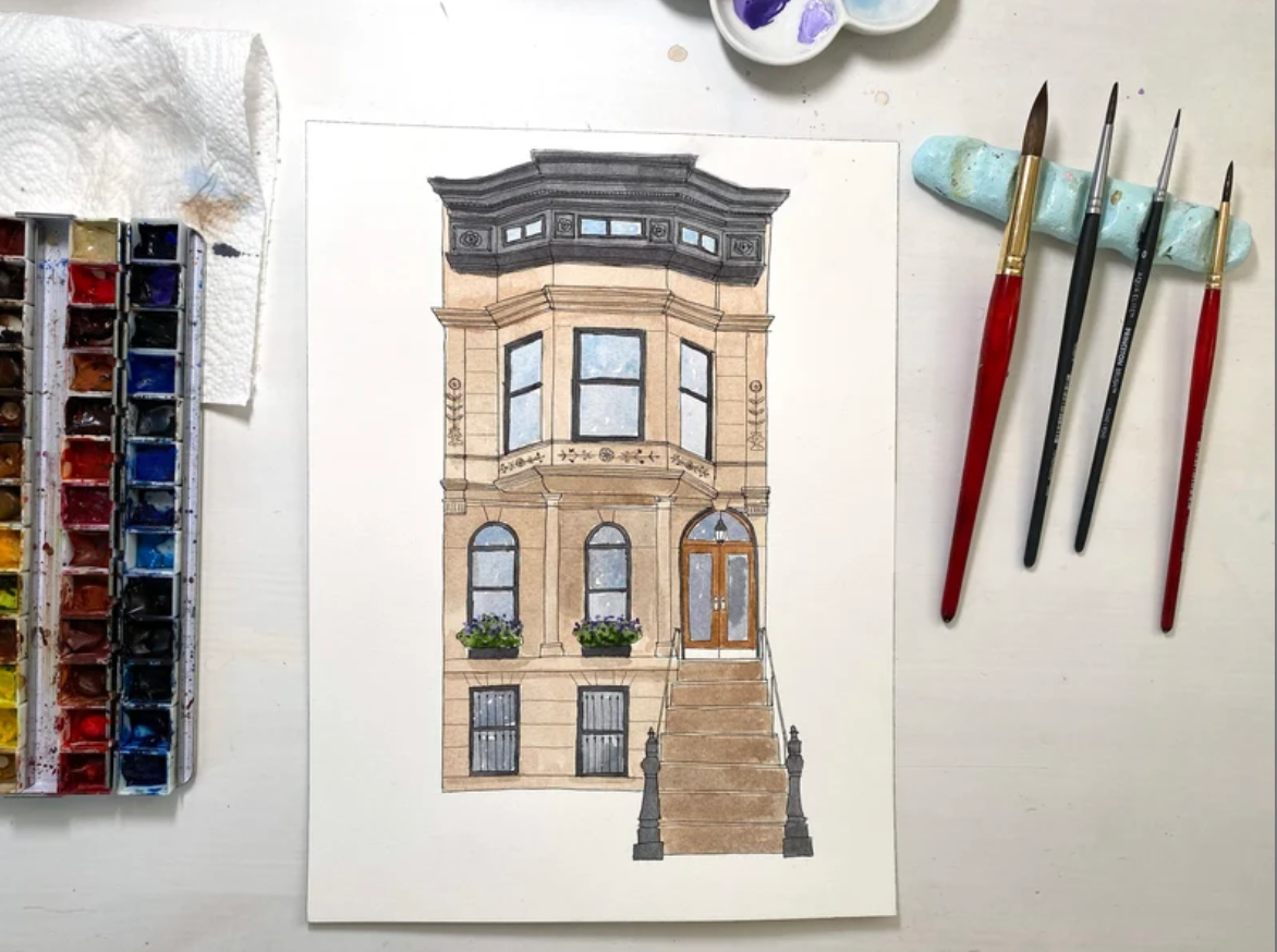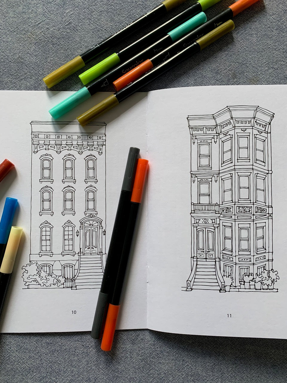 30+ unique Brooklyn brownstone illustrations – Exquisitely rendered for coloring with pencils, markers, or watercolors