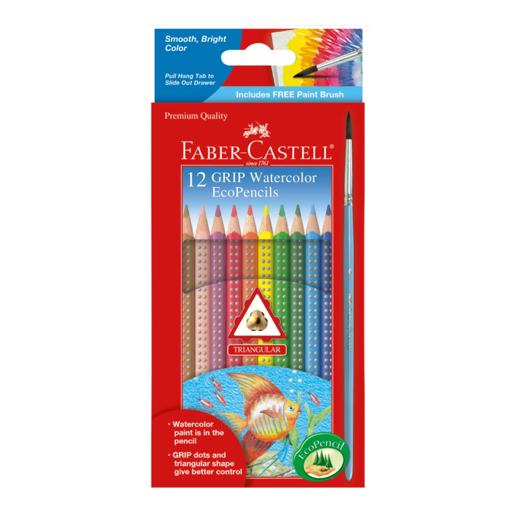 Watercolor pencils with rich, blendable pigment that activates instantly with water. Each triangular pencil features a soft-grip zone for comfort and control. Made from re-forested wood with break-resistant, easy-to-sharpen leads—perfect for smooth, vibrant color and effortless blending.