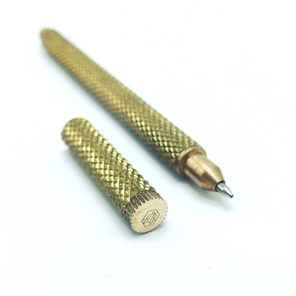 Crafted from solid brass, this knurled pen exudes elegance and strength. With its substantial weight and striking design, it’s sure to be the standout piece on your desk. Equipped with a high-capacity blue Schmidt P900 refill, it ensures a smooth writing experience and effortless refilling. A perfect blend of sophistication and functionality.