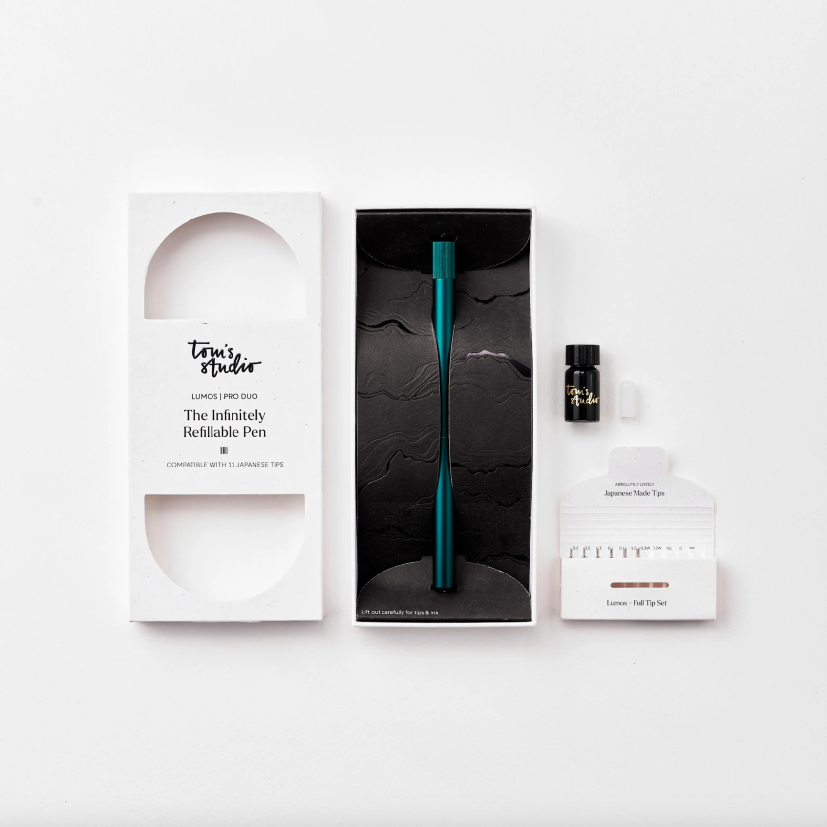 The Lumos Pro is a sleek, infinitely refillable pen designed to replace disposable writing tools. Crafted from durable anodized aluminum, this pen includes 9 professional-grade artist tips and 2 writing tips, offering versatility for every creative need. The Lumos is an eco-friendly alternative to disposable pens, tackling the overwhelming impact of billions of biros in landfills.