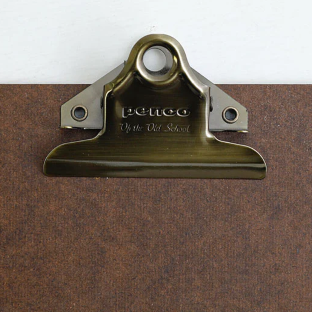 Add a touch of vintage charm to your workspace with this old-school clipboard, crafted from recycled hardwood fiber. The sturdy bronze metal clip keeps your documents secure, making it perfect for note-taking, organizing papers, or displaying lists. Durable and lightweight, it’s ideal for both home and office use.