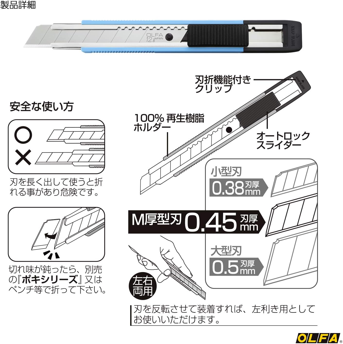 M-thick snap-off blade (0.45mm) for added strength and control