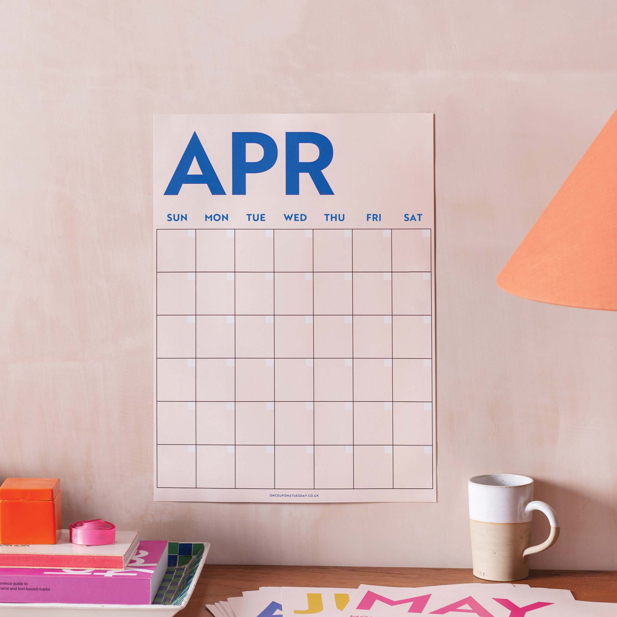This 12-page undated planner can be used all year round, with space to add dates as needed. Hang it as a large wall planner or use the pages as individual A3 prints. Printed on 100% recycled paper it features bold, fun colors in modern typography and a minimalist-inspired grid. Choose either a Sunday start or a Monday start.